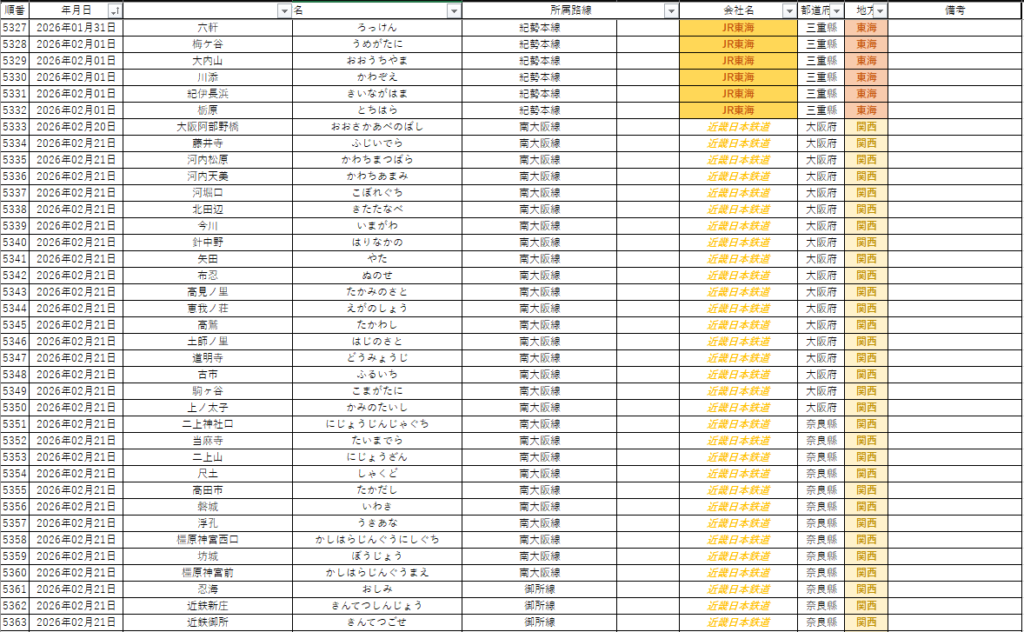 この固定ページでは、降人が下車訪問した驛を随時更新するページです。これまで何処の驛を降りたのか?最近何処の驛に行ったのか?と氣になる方は以下の表をご覧ください。