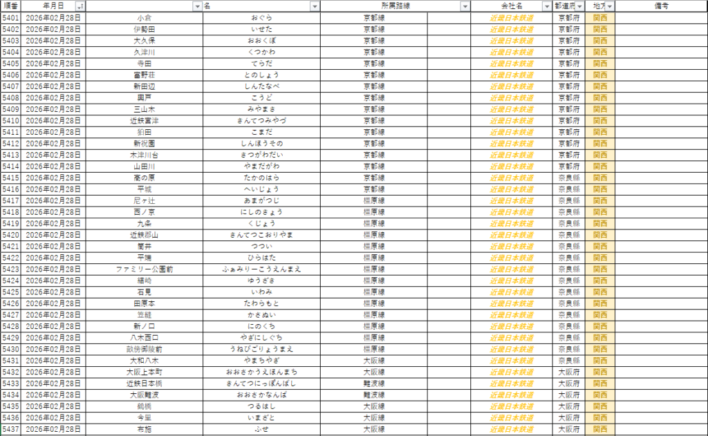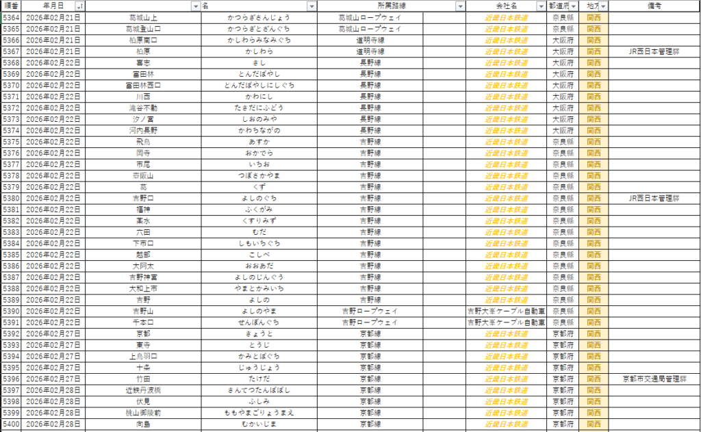 1月31日・2月1日で青空フリーパス効力圏内の紀勢本線の攻略を挟んだ後、近鉄完全攻略に向け2月下旬から3月頭にかけては南大阪・吉野線系統および大阪線・難波線・京都線・橿原線の攻略を実施。この結果無事に近畿日本鉄道線全線完乗・全驛下車訪問を達成。かつ、これまでの累計で奈良縣内の鐵道全驛下車訪問が達成され、完全攻略都道府縣が沖縄・山梨に加え3となった。